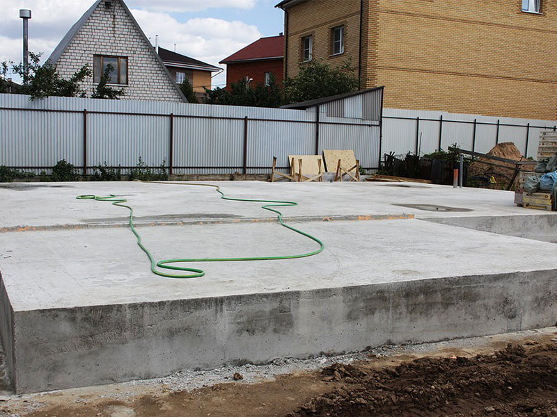 Заливка плиты бетоном за 1 день без перерыва. Заранее привозим необходимое количество раствора на участок.