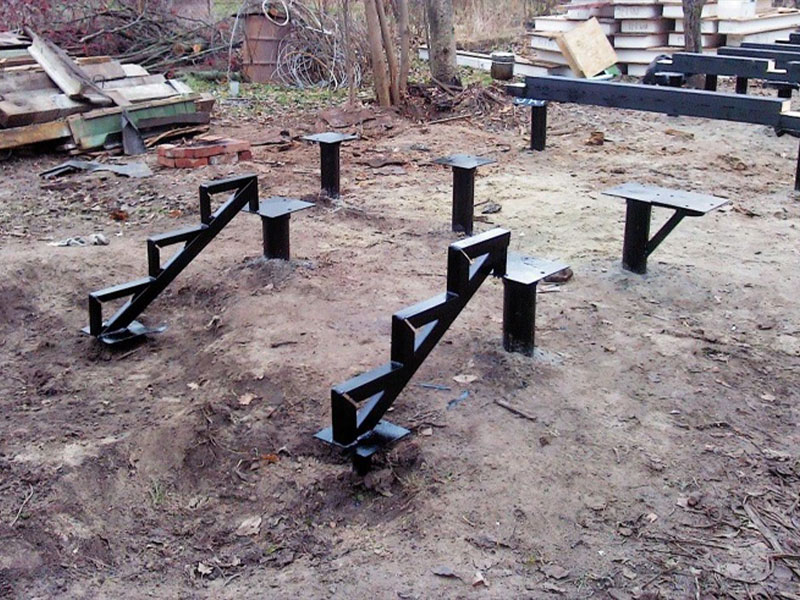 Для определения типа почвы и уклона участка выполняется пробное бурение. Мастер рассчитывает необходимую длину и диаметр опорных стержней. По результату расчета изготавливаются сваи.
